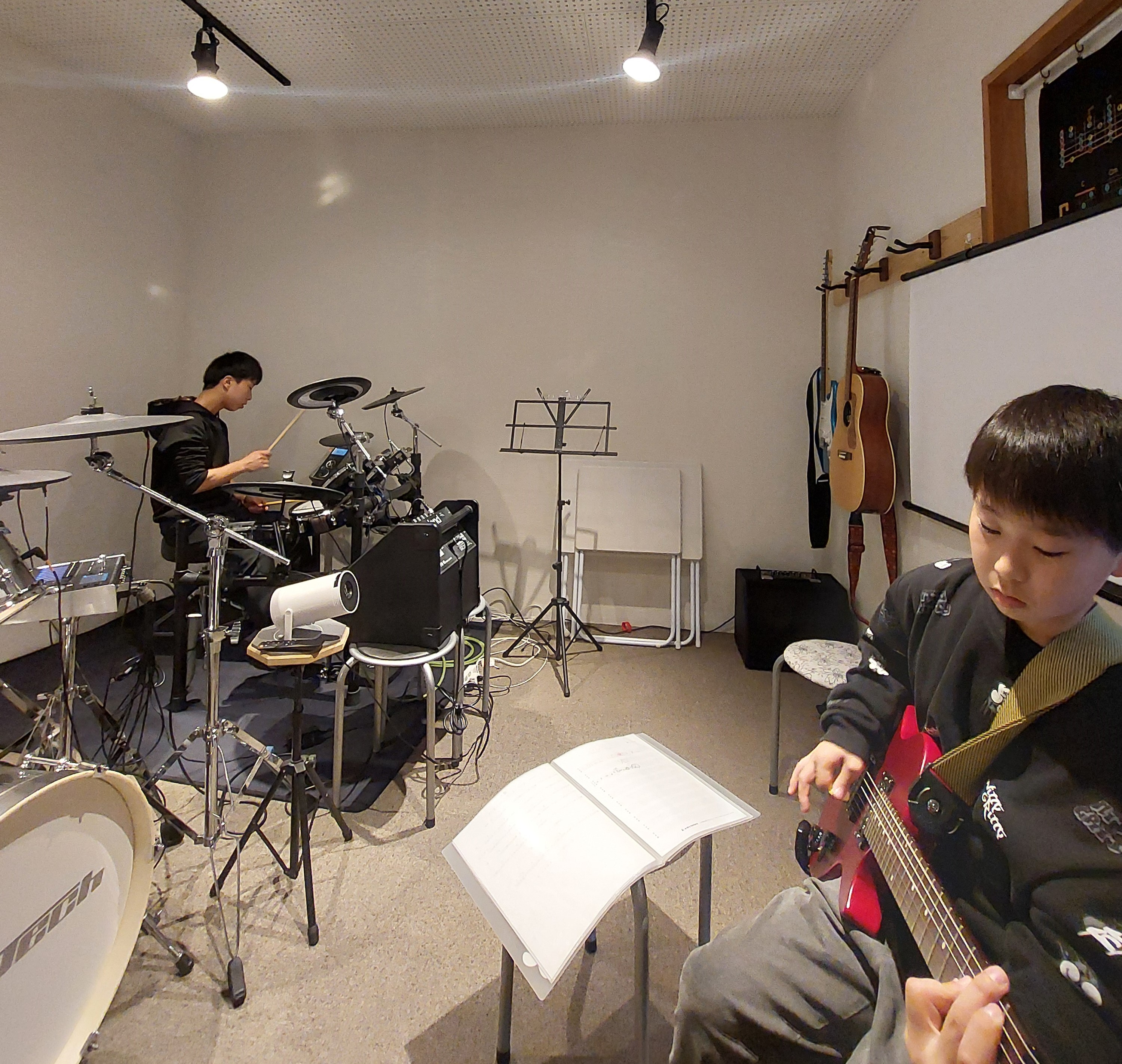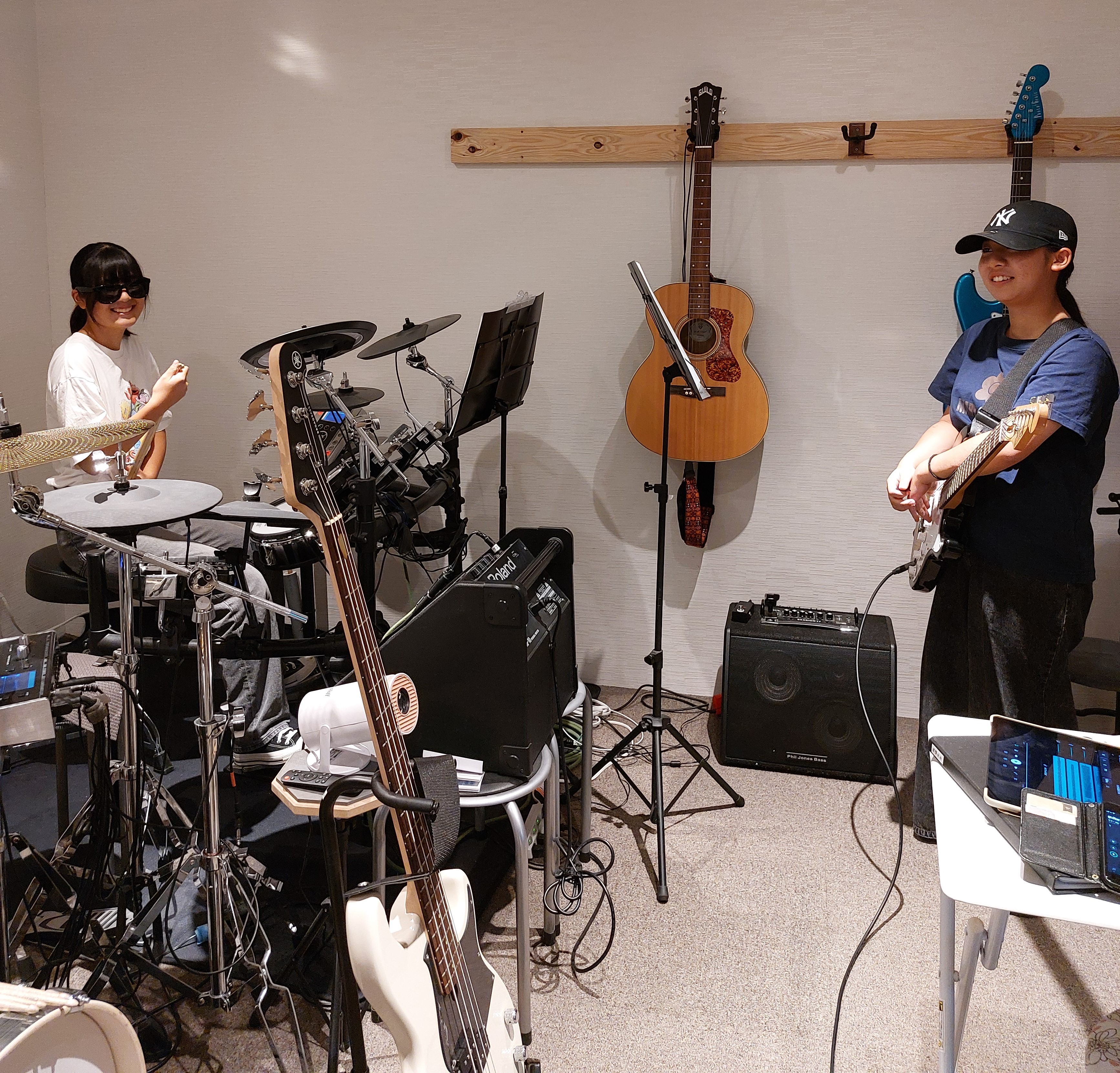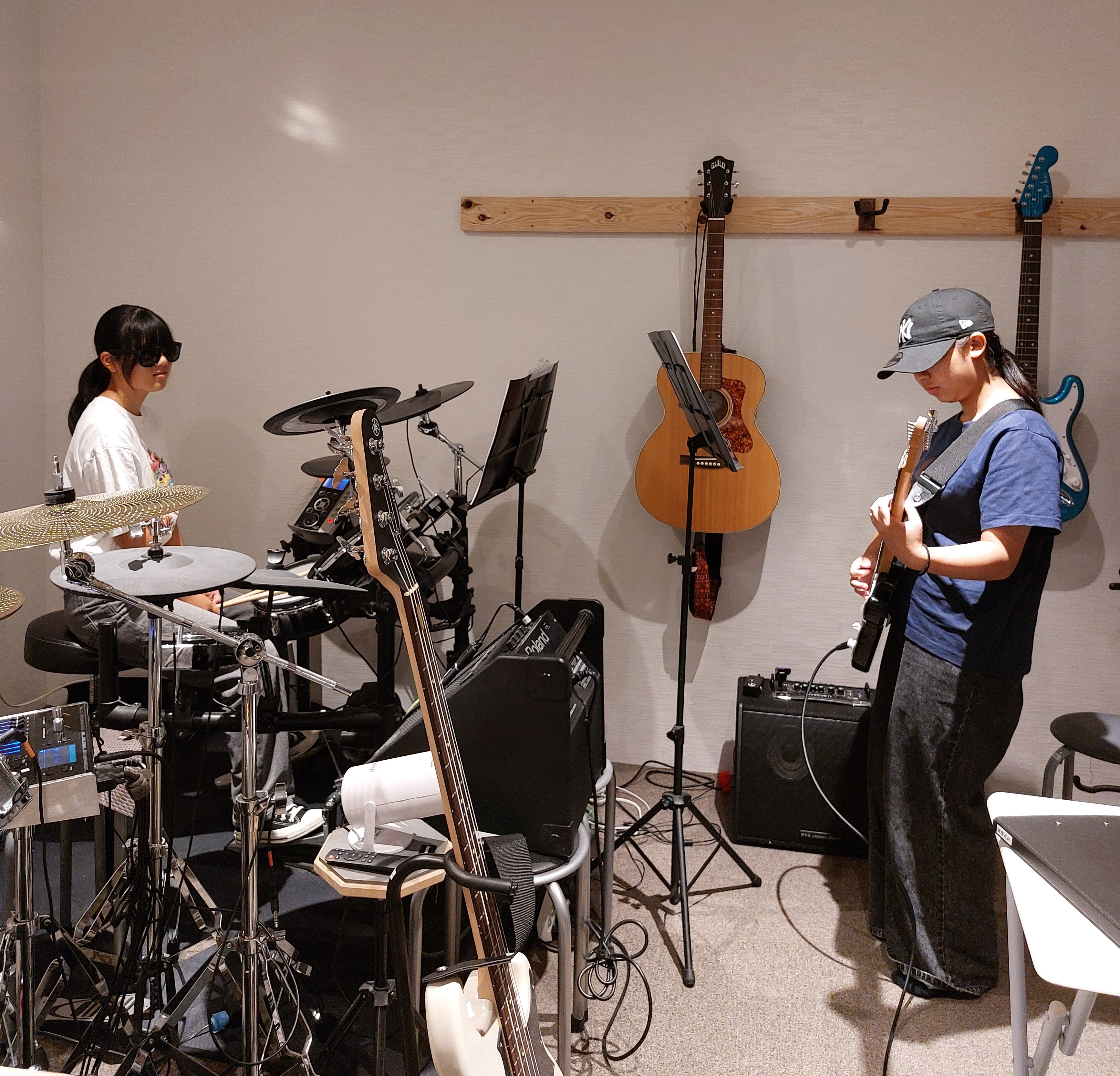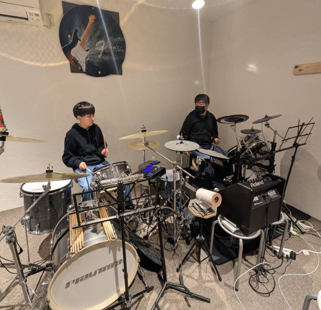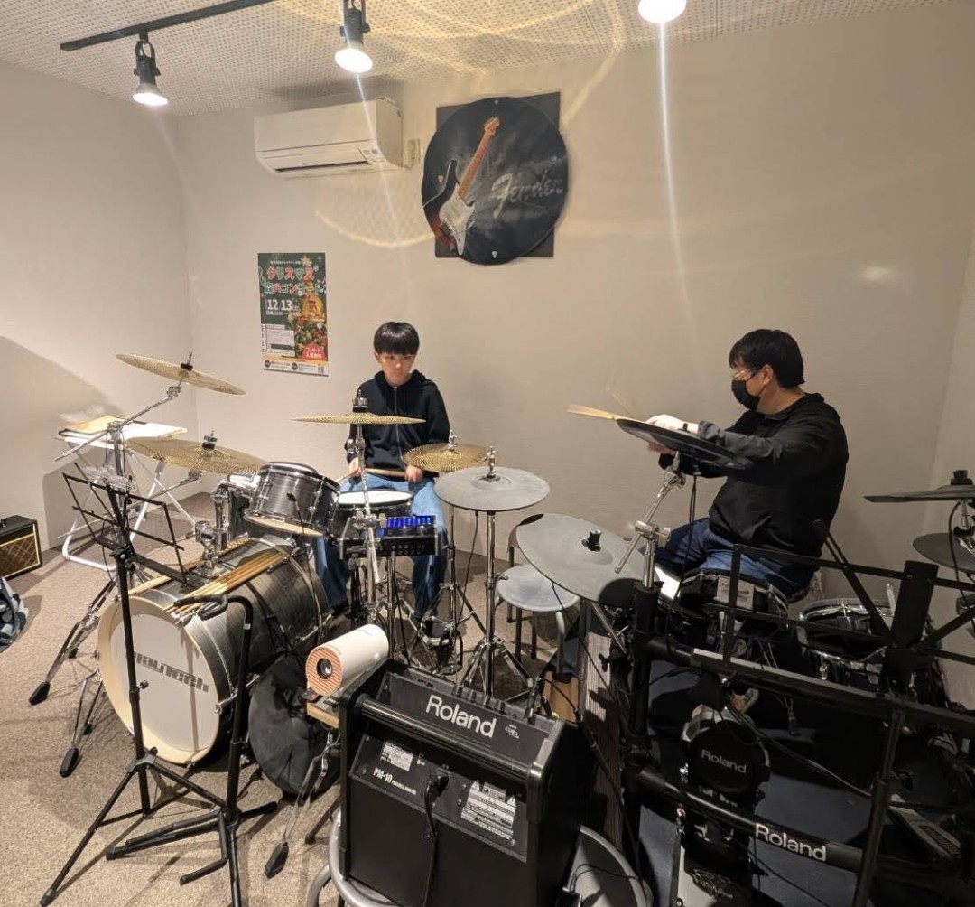 ギターとドラムどちらも指導できる講師が在籍していますので、ギターとドラムのグループレッスンが可能☆彡